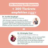 Und wie alle Ziggy Nassfutter ist es stärkefrei. Für eine gute Verträglichkeit selbst bei den empfindlichsten Katzen.