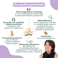 Nassfutter für erwachsene diabetische Katzen, entwickelt von unserer Tierärztin und Spezialistin für klinische Ernährung, Dr. Géraldine Blanchard.