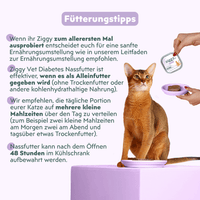 Verwöhnt eure Katze mit dem schmackhaften und genussvollen Ziggy VET Nassfutter für diabetische Katzen und sorgt gleichzeitig für sie vor!