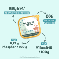 (Vergleicht es mit Trockenfutter, indem ihr die % auf der Trockenmasse gleich darunter überprüft)