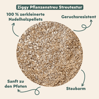 Die pflanzliche Katzenstreu von Ziggy ist 100 % natürlich, kompostierbar und biologisch abbaubar.