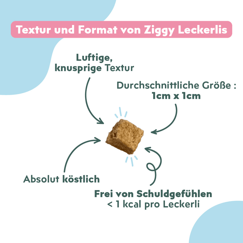 Empfohlene Menge: 1 Leckerli pro kg Idealgewicht.