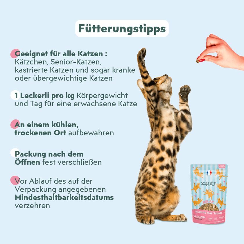 4-5 Leckerli pro Tag für eine Katze von 4 bis 5 kg.