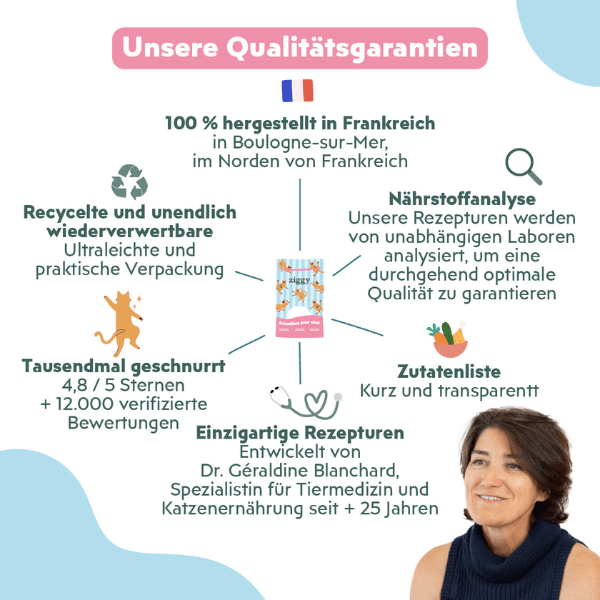 Und weil die Zusammensetzung besonders rein ist, eignet es sich für ALLE Katzen: heranwachsende Kätzchen, Senior-Katzen, Katzen mit gesundheitlichen Einschränkungen oder Naschkatzen!