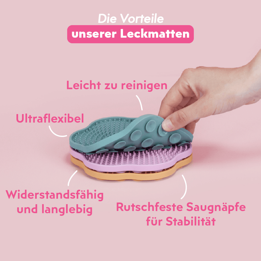 Entdecken Sie unsere brandneue Schleckmatte für Katzen, die speziell entwickelt wurde, um das Fressverhalten zu verlangsamen und gleichzeitig den natürlichen Schleckinstinkt Ihrer Katze zu fördern. Das unterstützt die Verdauung, verbessert die Zahnhygiene und sorgt für Beschäftigung.