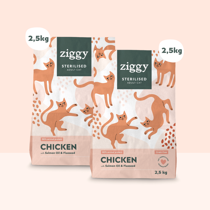 Lasst eure Katze das köstliche Ziggy-Trockenfutter entdecken, mit unserem Party-Entdeckerpaket für kastrierte erwachsene Katzen - perfekt für eure Stubentiger!