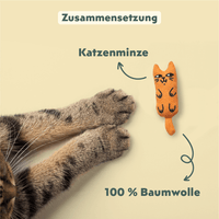 Hergestellt aus 100 % Baumwolle, ist dieses Spielzeug mit hochwertiger Katzenminze angereichert - einem natürlichen Inhaltsstoff, der die meisten Katzen in einen Zustand reiner Glückseligkeit versetzt.