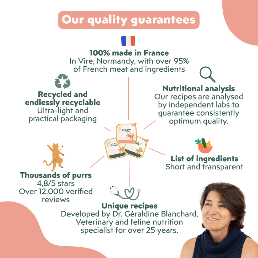 Starch-free, like all Ziggy wet foods, for great digestibility even for the most sensitive cats.