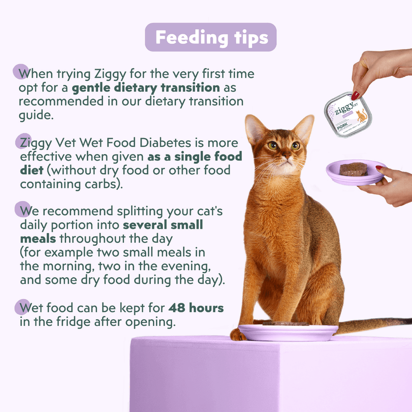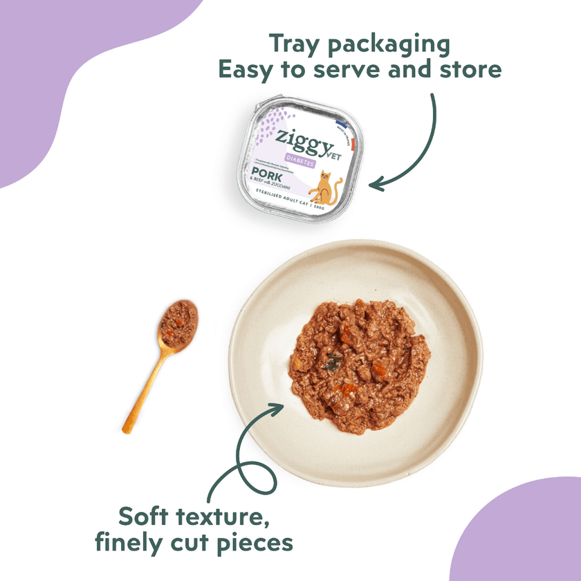 Tasty and indulgent, Ziggy VET wet food for diabetic cats cares of your fluffy friend's health and keeps him purring with delight!
