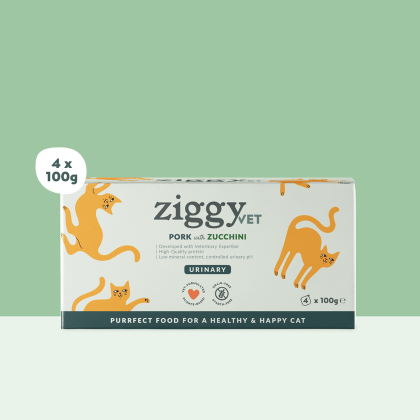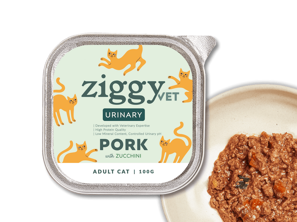 Ziggy VET Urology wet food has been specifically developed to support the urinary function of cats with urinary problems (idiopathic cystitis, reduction of struvite stone formation, and calcium oxalate stones).